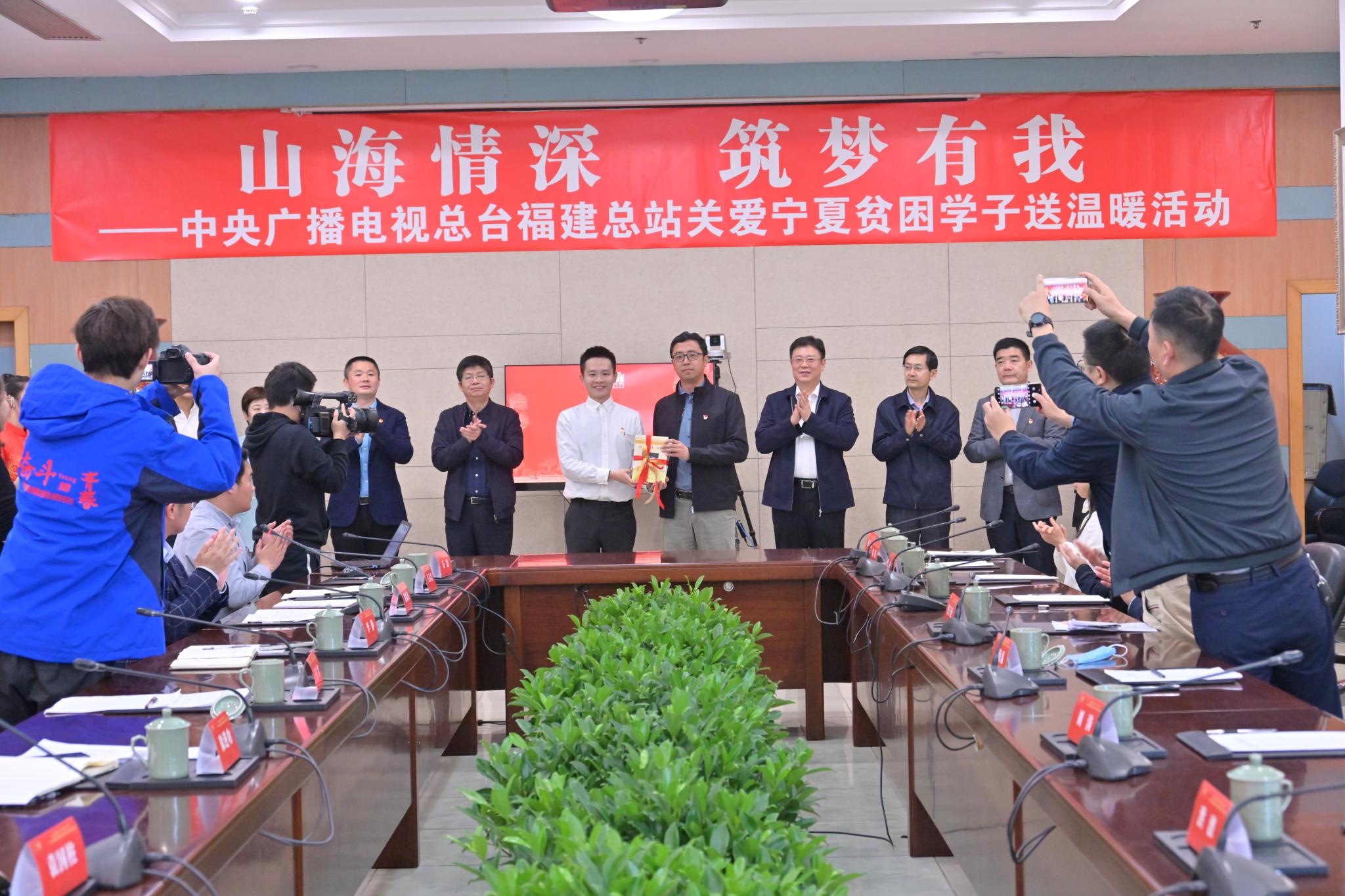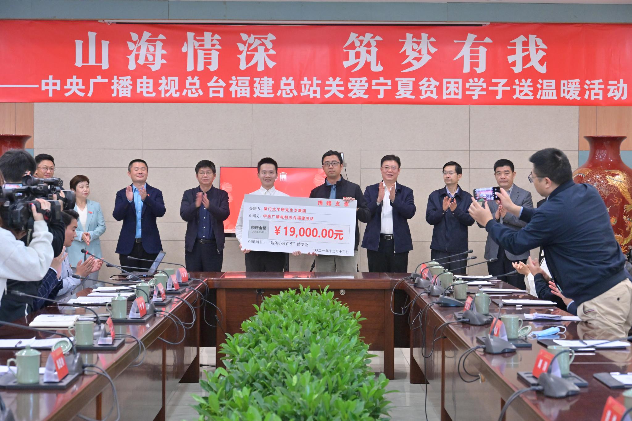 活动举行了捐赠仪式,中央广播电视总台福建总站向宁夏贫困学子捐赠助学金1.9万元、书籍200余册。徐进功代表学校回赠《为吾国放一异彩——厦门大学与伟大祖国》《同一个梦想——厦大扶贫故事》等纪念书籍。