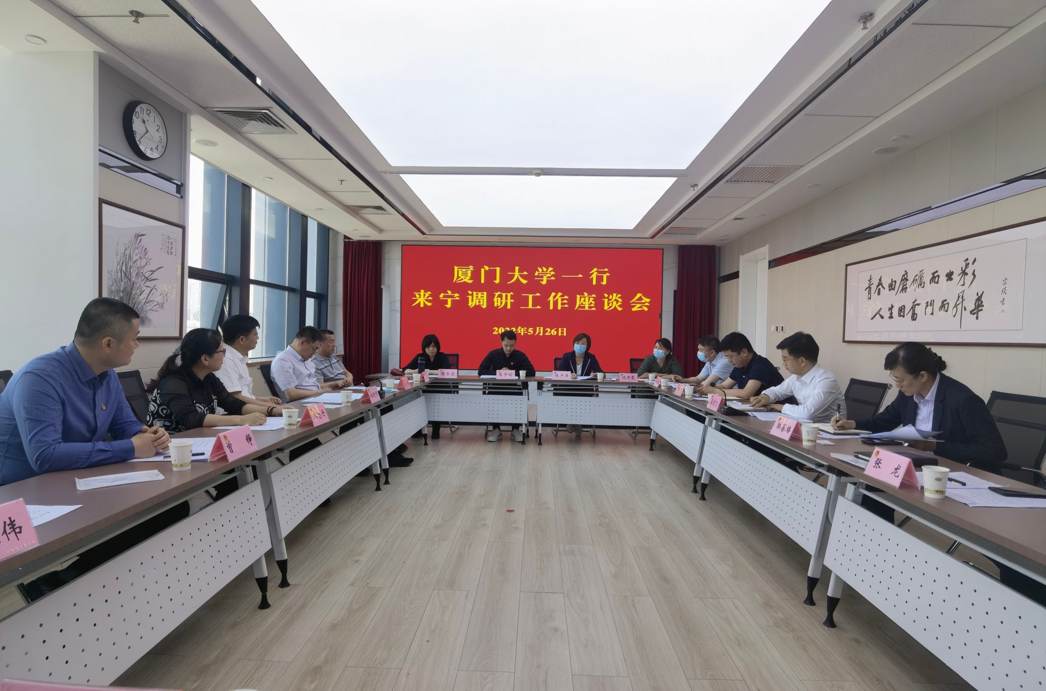 26日上午,慰问团一行来到银川,与宁夏团区委座谈交流。宁夏团区委书记龚雪飞,副书记韩蕃璠、周利民、张龙及各部门负责同志参与座谈。张龙介绍了宁夏西部计划总体开展情况,肯定了我校研究生支教团志愿者不怕吃苦、兢兢业业、主动作为的优良品质,并表示将会继续整合资源,给予我校西部计划志愿者和研支团工作更多支持和保障。龚雪飞代表宁夏团区委向学校长期以来对宁夏的关心与帮扶表示感谢,他希望双方进一步发挥各自优势,在人才引进、科学研究、社会实践等方面不断拓展新境界,向更宽领域、更深层次、更高水平迈进。徐进功表示,26年来,闽宁两省区共同演绎了感人至深的“山海情”,成为东西部扶贫协作的典范。新的征程上,厦门大学将进一步发挥大学人才资源和科技优势,聚焦精准帮扶,深化校地合作,把闽宁协作的金字招牌擦得更亮。