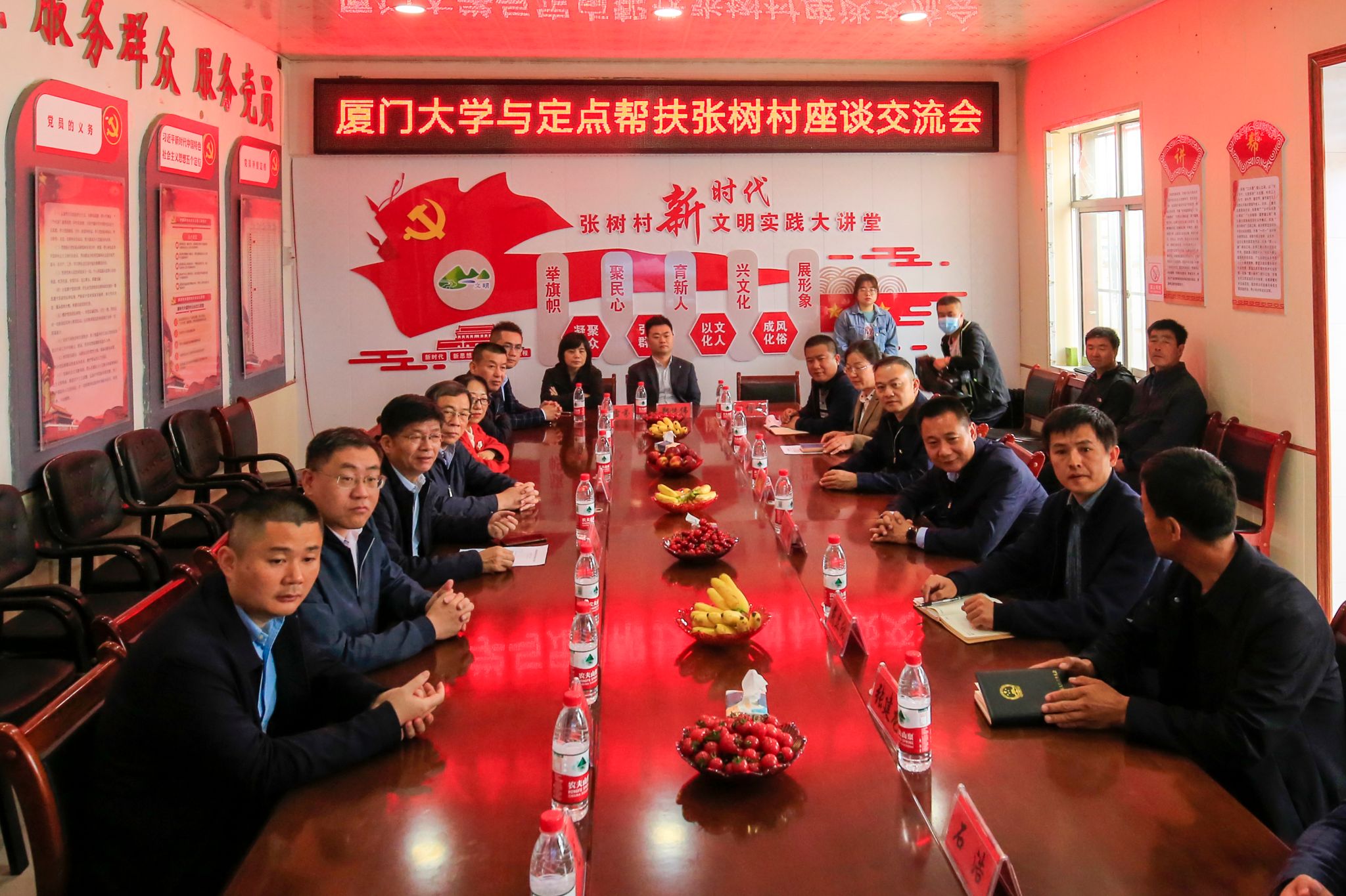 25日,慰问团一行来到厦门大学对口帮扶的隆德县,看望支教队员和驻村干部。隆德县委书记刘斌代表隆德县向厦门大学动员全校力量真情奉献隆德表示衷心感谢,他表示,隆德县将把厦大的关心关怀关爱转化为推动乡村振兴的实际行动,为实现更高质量的可持续发展继续不懈奋斗。徐进功指出,脱贫摘帽不是终点,山海情缘没有断点。学校将继续发挥自身优势,努力在隆德县实现高质量发展的过程中贡献厦大新的智慧和力量。慰问团一行还前往张树村考察了人造花车间、肉牛养殖基地等重点产业项目。