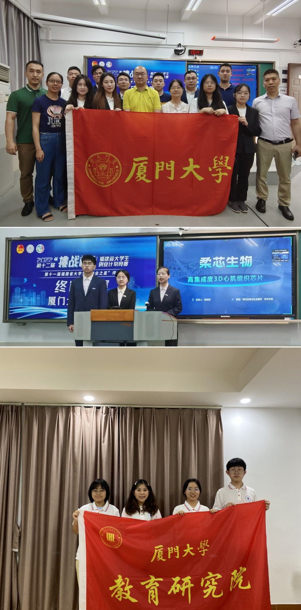 在第十二届“挑战杯”福建省创业计划竞赛中,我校荣获金奖的5件作品分别是:航空航天学院的作品《智造光学—超精密激光聚焦透镜加工全球领航者》和《柔芯生物--高集成度3D心肌组织芯片》、教育研究院的作品《情系山河——劳动教育振兴“空心村”的探索者》、电子科学与技术学院的作品《雀影医疗—便携式磁共振智能成像仪》、电影学院的作品《惜影力——民间珍惜音像文献发掘整理修复推广》。
