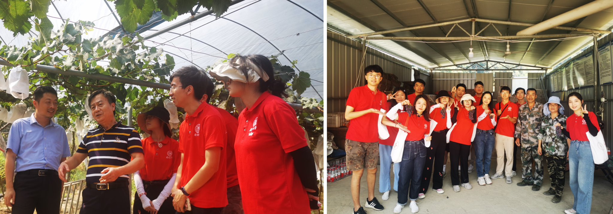 顶着42℃高温,队员们来到顺昌县高阳乡南亨村高山种植示范基地,先后参访南亨村茂荣家庭农场、雪峰果蔬农民专业合作社仓储及冷库。倪济民是当地一名经验丰富的科技特派员,他向实践队介绍了“科技特派员+合作社+农户”模式对当地葡萄产业的影响,指出这一模式改变了农户“单兵作战”的情况,形成“风险共担、利益共享”的共同体,统一解决幼苗种植、肥料供应、葡萄销售难等一系列问题,增加农户收入,促进产业发展。