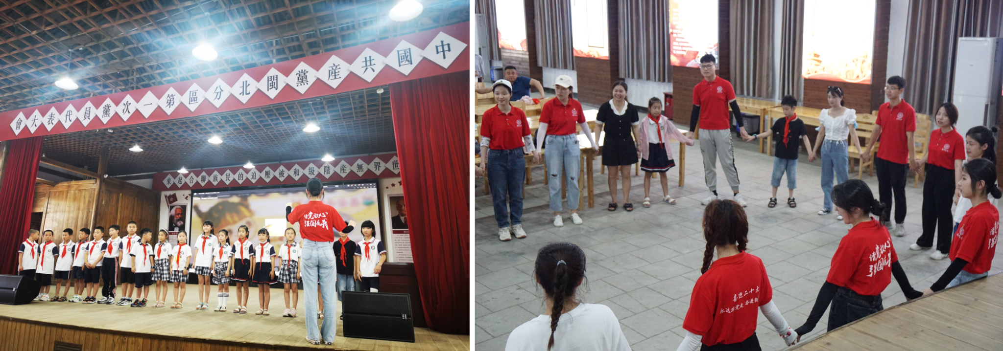 “我们是共产主义接班人,继承革命先辈的光荣传统……” 实践队员们还在红色首府陈列馆内为武夷山实验小学的少先队员们排演合唱节目,并共同完成团队素拓活动,增强少先队员的光荣感和使命感,以喜闻乐见的形式助力“抓好青少年学习教育,让红色基因、革命薪火代代传承”。
