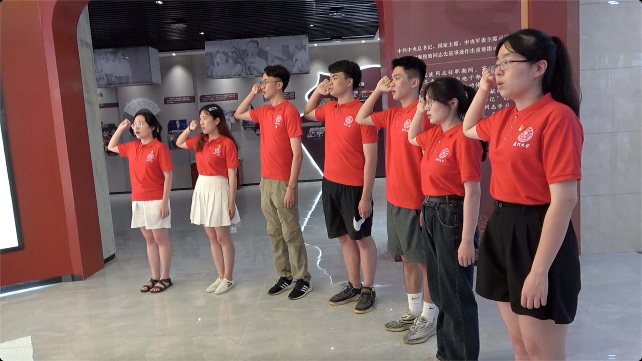 “对党忠诚、心系群众、忘我工作、无私奉献”,走进中共南平市委党校的廖俊波事迹展示馆,墙上赫然写着的这十六个字概括了廖俊波“初心一诺铸忠诚,践行使命写担当”的短暂一生。参观完毕后,实践队中的党员们在展馆中面向党旗,重温入党誓词,宣誓要将自己所学运用于为人民服务之中,努力“扑下身子、苦干实干”,争当“廖俊波式好干部”。