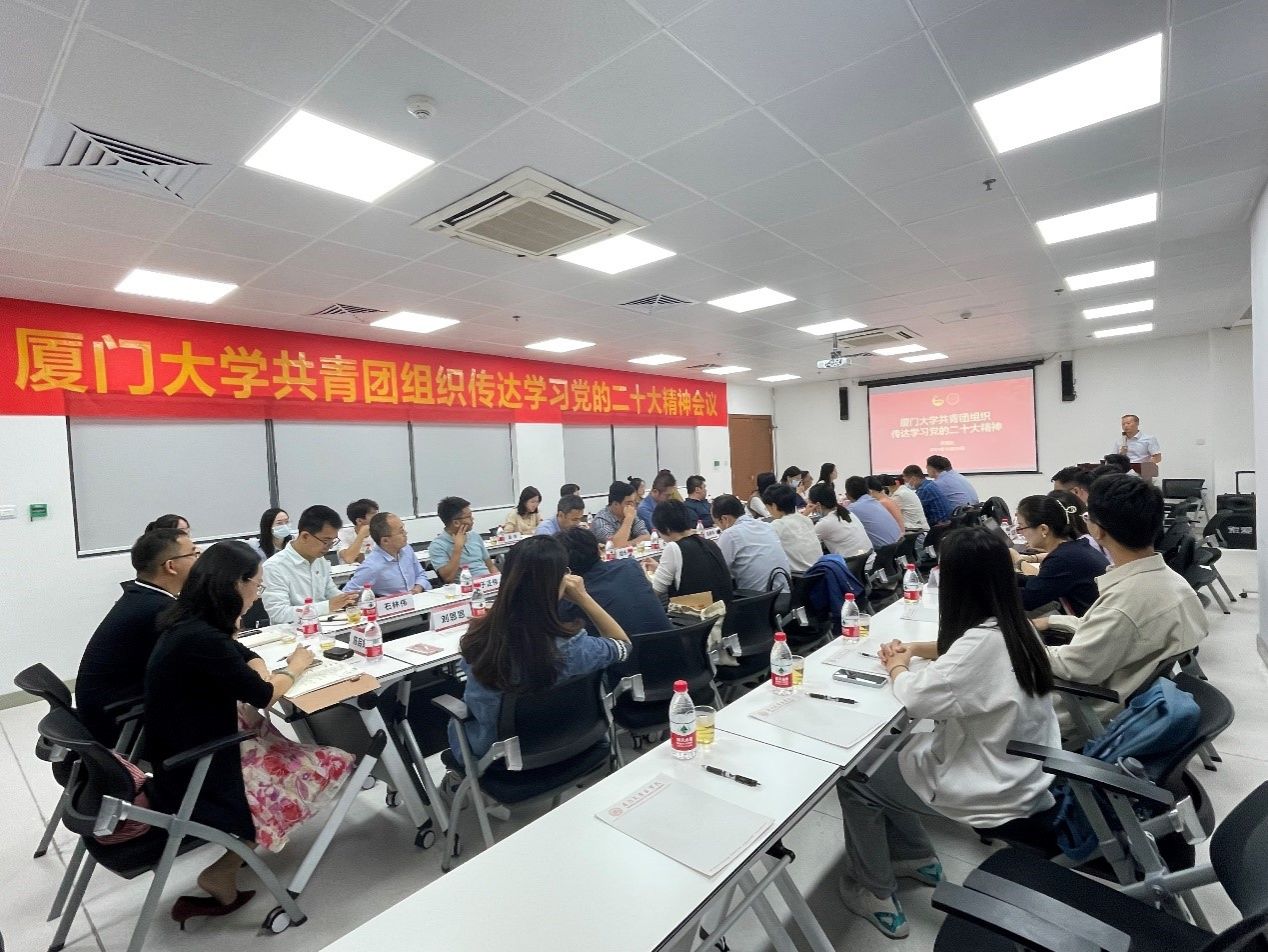 10月26日下午,厦门大学共青团组织传达学习党的二十大精神会议暨2022-2023学年秋季学期全校第3次团干例会在医学院成智楼举行,校团委书记班子成员、各基层团委负责人、校级学生会组织骨干代表等参加。会议由校团委书记洪海松主持。
