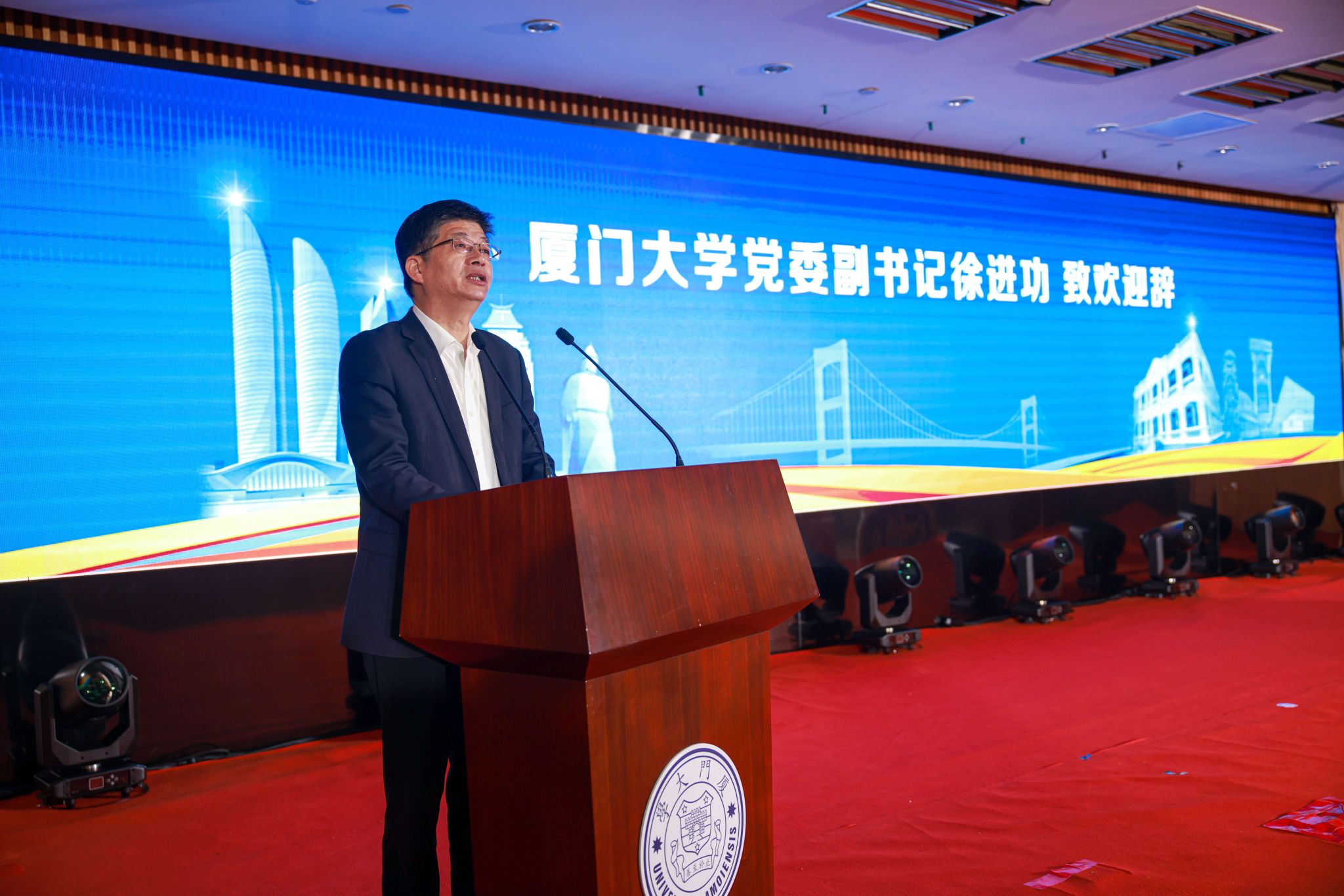 在观看开场视频《We Are 厦门》《厦门大学我们来了》之后,厦门大学党委副书记徐进功为本次研习营致欢迎辞。他代表厦门大学热情欢迎参与本次活动的两岸青年师生。他指出,厦门大学是最早招收台湾学生的大陆高校之一,也是台湾学生赴大陆求学最热门的高校之一。百年办校历程中,厦门大学在两岸人才培养、文化交往、学术交流等方面取得了一系列成果。此次研习营是疫情三年之后厦门大学举办的最大规模的台湾高校学子来厦交流活动,也是厦门大学促进两岸高等教育融合发展的最新举措。他希望通过此次研习营,促进两岸青年交流、交往、交心、交融,共同进步、共同成长,同时进一步促进厦门大学与台湾高校之间更紧密、更深层的交流与合作。