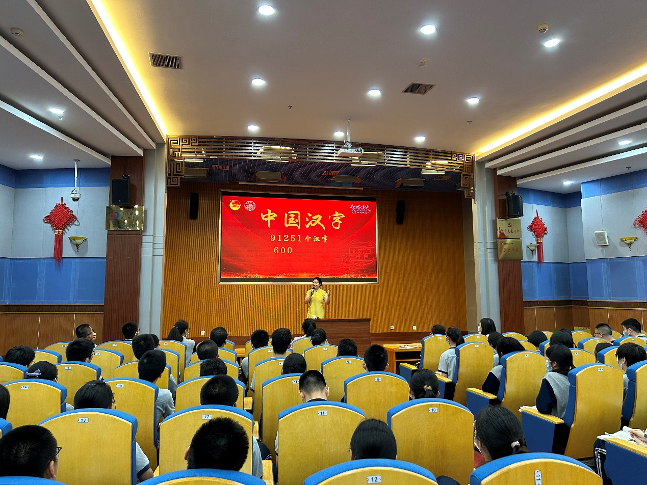 “汉字就是一道光,中国人所有的知识、思想、情感都通过汉字一代代流传下来……”在厦门市第一中学景行楼报告厅内,讲师团成员杨圆圆手执毛笔,在宣讲间隙于卷轴上现场书写“中国”二字,依托博大精深的书法艺术,深情讲述以汉字为首的中华优秀传统文化中蕴含的精气神。在场师生无不沉浸式感受传统书法艺术之美,更从传统中华汉字中所体现的中国智慧与中国精神中获得坚定信心和砥砺前行的不竭动力。