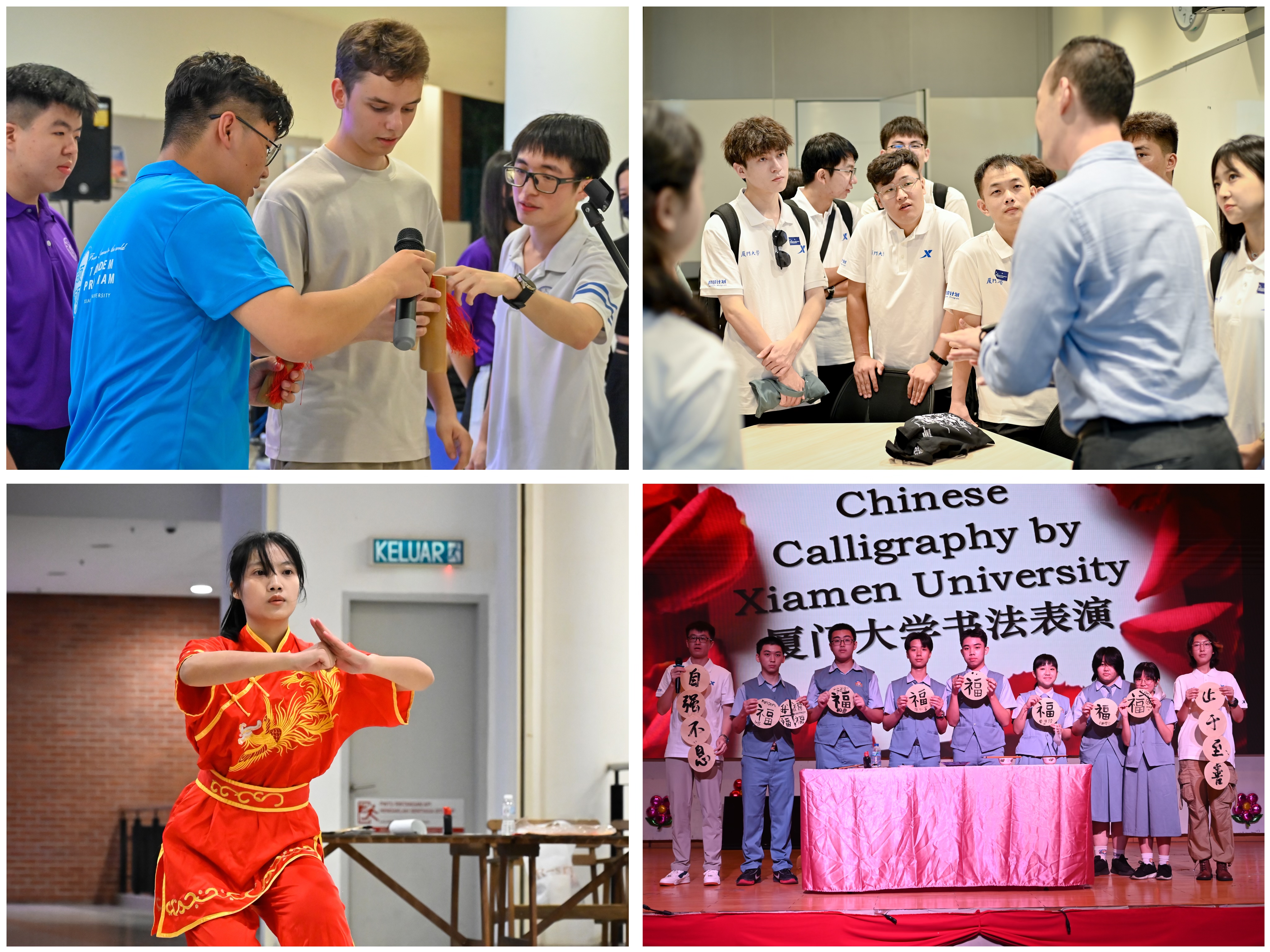 实践队员先后赴新加坡国立大学、南洋理工大学、厦门大学马来西亚分校、诺丁汉大学马来西亚分校、印度尼西亚建国大学以及印尼巴中三语学校进行交流访问。与当地师生围绕拔尖创新人才培养、国际化办学模式、数字经济发展趋势、海外华文教育等议题进行了学习与探讨,积极探寻海上丝绸之路高校共商共建共享的未来,推动加强“一带一路”国家教育文化领域的交流合作。在厦门大学马来西亚分校和印尼巴中三语学校,实践队员还通过书法、武术、京剧、快板等表演形式,为各国青年打开了一扇了解中国和中华文化的窗口,为讲好中国故事、传播中国声音、展示更为立体的中国形象发挥了积极作用。