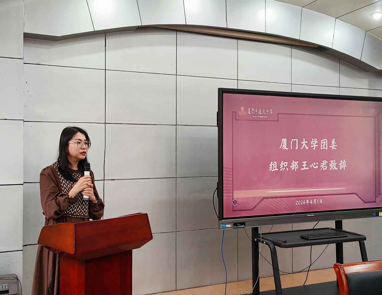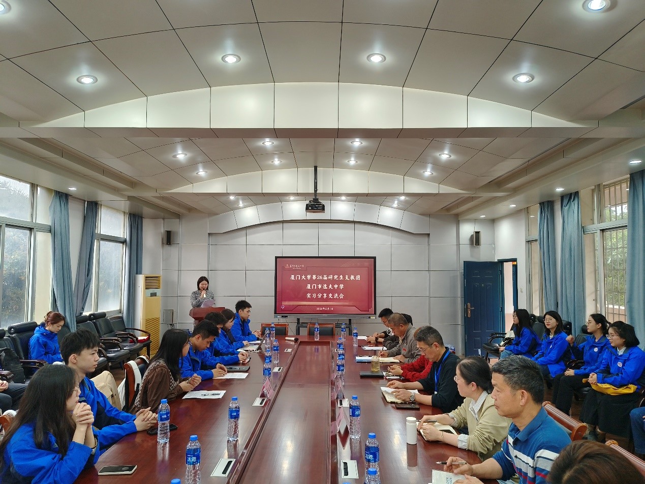 2024年4月1日下午,厦门大学第26届研究生支教团实习分享交流会在厦门市逸夫中学顺利举行。逸夫中学校长翁建辉、厦门大学团委组织部主任王心君、各处室负责人、指导老师以及厦大第26届研究生支教团全体成员出席本次会议。