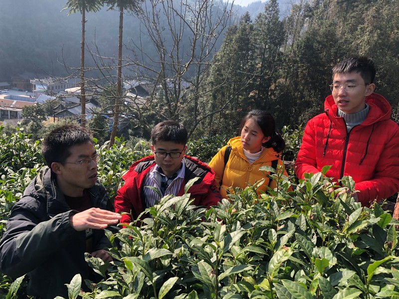 实践队走进湘西土家族苗族自治州里曾经的国家级贫困县永顺县和保靖县。在永顺县万民乡,实践队师生实地参观了大丰生态农业开发有限公司的莓茶生产基地和莓茶制作车间。基地占地面积2200多亩,茶叶产品年销售量达30余万盒,带动万民乡及周边乡村1000多人就业脱贫。在保靖县吕洞山镇黄金村,实践队一边了解湖南特产“黄金茶”的历史典故、文化内涵、经济价值和社会价值,一边深入茶园下地劳动,进行采摘与拔草体验。实践队计划将“黄金茶”、“莓茶”等湘西特产进行文化创意开发,以提升产品附加值,扩大销路,进一步带动当地居民增收致富。
