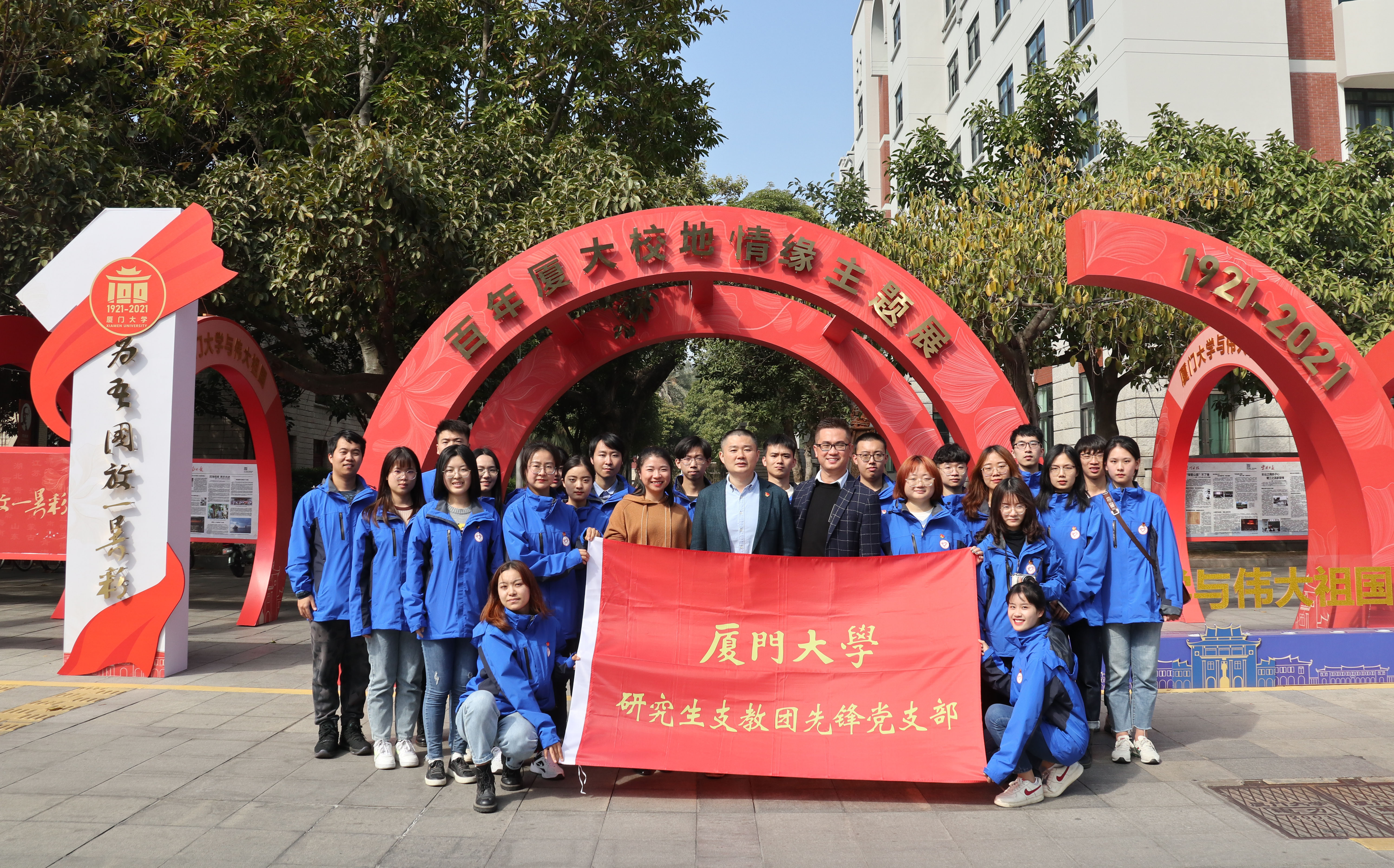 为深化“四史”学习教育,厚植爱国荣校情怀,1月22日上午,厦门大学研究生支教团先锋党支部开展“固定党日+”活动,组织第23届研究生支教团全体队员开展“为吾国放一异彩——厦门大学与伟大祖国”主题展学习教育活动。校团委书记曾铮,校团委副书记梁振伟,校团委兼职副书记、研究生支教团先锋党支部书记林宇阳等20余人参加活动。
