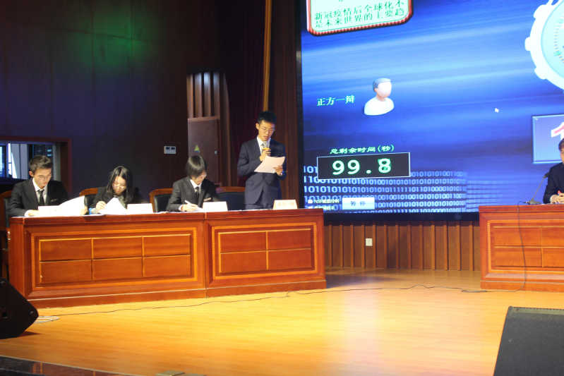 介绍过后,信息学院辩论队和数学科学学院辩论队的辩手们各自登上了舞台。双方严阵以待,对冠军势在必得。当主席宣布辩论赛开始后,双方辩手展开了精彩的发言。正反方分别立论,阐明各自的论点。两方就辩题展开了激烈的讨论,双方唇枪舌战,妙语连珠。比赛中,双方辩手通过对于立论深入浅出的解释,运用现实生活中的例子,引用不同学界的观点,以灵敏的思维、激烈的言辞,引来了现场观众的阵阵掌声。