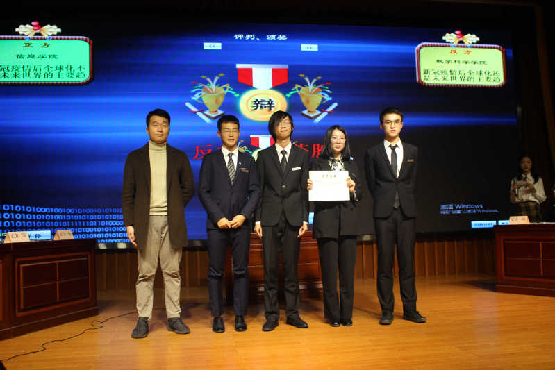 决赛现场,两支队伍以“新冠疫情后,全球化不是/还是未来世界的主要趋势”为辩题展开辩论。
