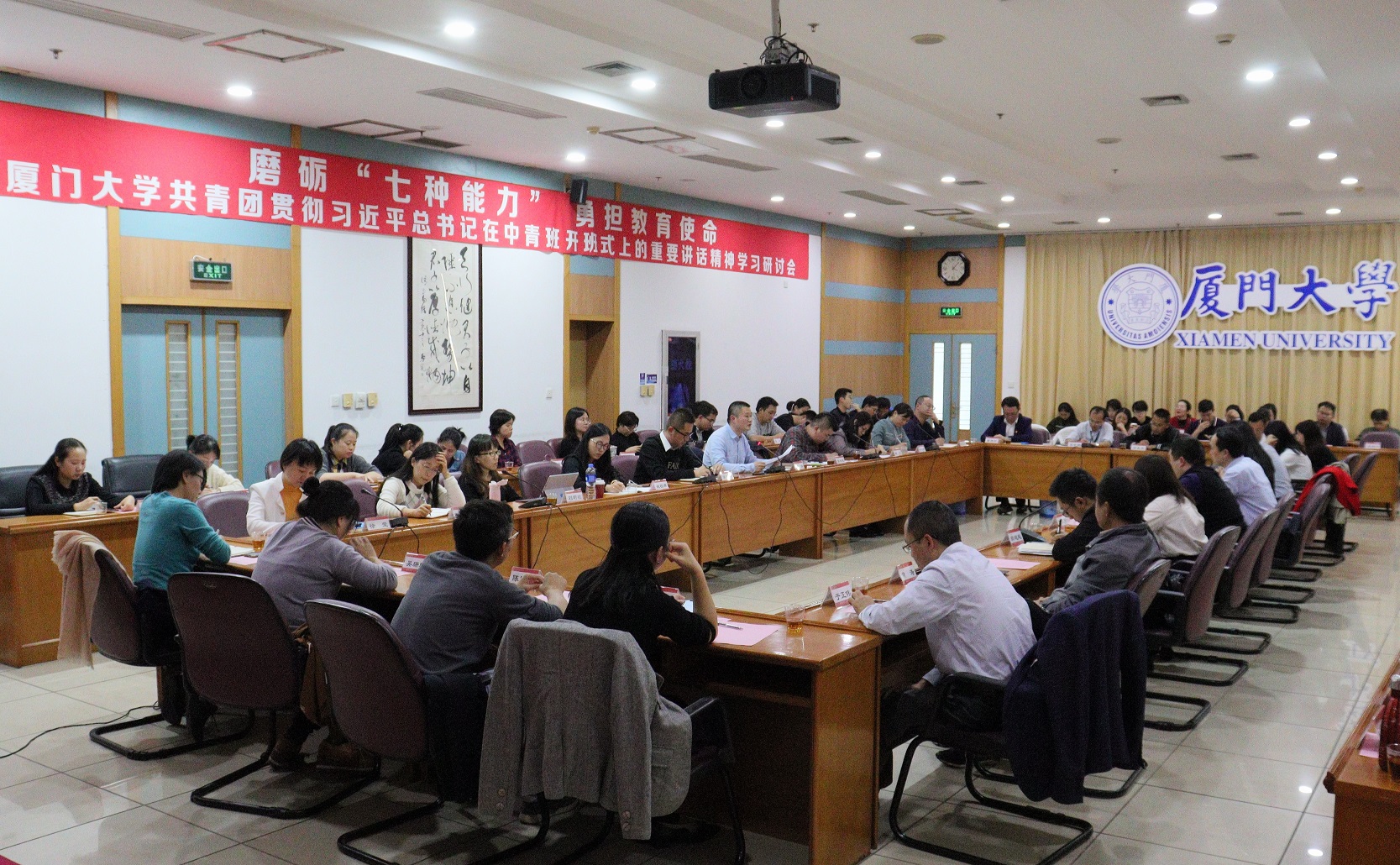为激励广大团干部磨砺“七种能力”,勇担教育使命,为学校“双一流”建设做出新的贡献,12月11日,厦门大学共青团干部学习贯彻习近平总书记在2020年秋季学期中央党校(国家行政学院)中青年干部培训班开班式上的重要讲话精神研讨会在颂恩楼220报告厅举行。校团委副书记林蕊主持会议。