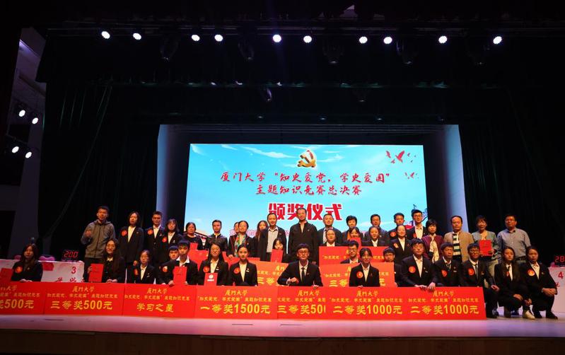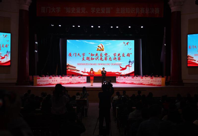 为贯彻落实教育部办公厅《关于在全国高校师生中开展党史、新中国史、改革开放史、社会主义发展史学习教育及新冠肺炎疫情防控知识竞答讲述活动的通知》文件精神,持续深化爱国主义教育,厦门大学“知史爱党,学史爱国”主题知识竞赛在十月火热开赛。经过线上答题初试、校级笔试选拔,团队积分排名前十的十支队伍进入总决赛。该竞赛围绕“四史”教育及新冠肺炎疫情防控知识为主要内容,通过学习、宣传和竞赛,深化学生党员对“四史”的学习和认识,增强党员意识。