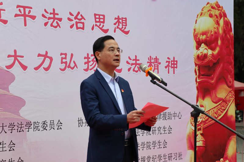 副校长邱伟杰致辞。邱伟杰表示,今年12月4日是我国第七个国家宪法日,全体师生要认真学习贯彻习近平法治思想和中央全面依法治国工作会议精神,深刻认识宪法的重要地位和重要作用,自觉维护宪法权威;要深入学习贯彻习近平总书记关于宪法的重要论述精神,把握正确政治方向;要加强宪法宣传教育,把弘扬宪法精神与推进全面依法治校紧密结合起来,不断完善相关工作机制,推动依法治校向纵深发展。
