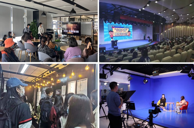 在现场教学和体验教学环节,学员们前往舞刀弄影文化传媒有限公司和厦门城市职业技术学院融媒体中心参观学习。在舞刀弄影文化传媒有限公司,讲解员介绍了公司的基本架构和业务,带领学员们参观了员工办公区和党团活动室,观看了《盼归》《平凡英雄》等原创微视频作品并分享了创作团队策划拍摄的心得和经验。在厦门城市职业学院融媒体中心,学员们欣赏了学校卡通形象“厦小城”的文创产品及“共抗疫情,城院力行”主题教育的优秀作品,并参观考察了“厦小城”艺术实践工坊、广播中心和演播厅等。双方进行了深入交流,互相借鉴经验,既开拓了视野,也增强了两校之间的联系。