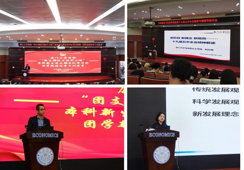 在课堂教学环节,马克思主义学院石红梅教授作题为“新阶段 新理念 新格局——十九届五中全会精神解读”的专题讲座,她从历史与现实、世界和中国发展大势、中国特色和国际比较等维度,深入浅出地阐述了十九届五中全会的丰富内涵和核心要义。厦门市文化馆副馆长苏华琦从手机摄影和微视频的现状与未来发展趋势等方面,结合宣传工作实务,分析了优质影像作品所具备的各种要素。《香港商报》厦门记者站站长胡薇围绕新媒体的发展与运用,与学员们探讨了媒体融合的实现路径,介绍了传统媒体借助新媒体平台走好转型之路的方法。校党委宣传部秘书欧阳桂莲从消息、通讯、采访三种常见新闻体裁入手,并以亲身参与的新闻报道为案例,分享了校园新闻采写的经验。校党委宣传部秘书黄伟彬以“主流宣传的爆款化传播”为题,分享了校园新媒体宣传要“从深刻到生动”“从报道到策划”“从官宣到共鸣”,更好地打造新媒体宣传优势品牌。