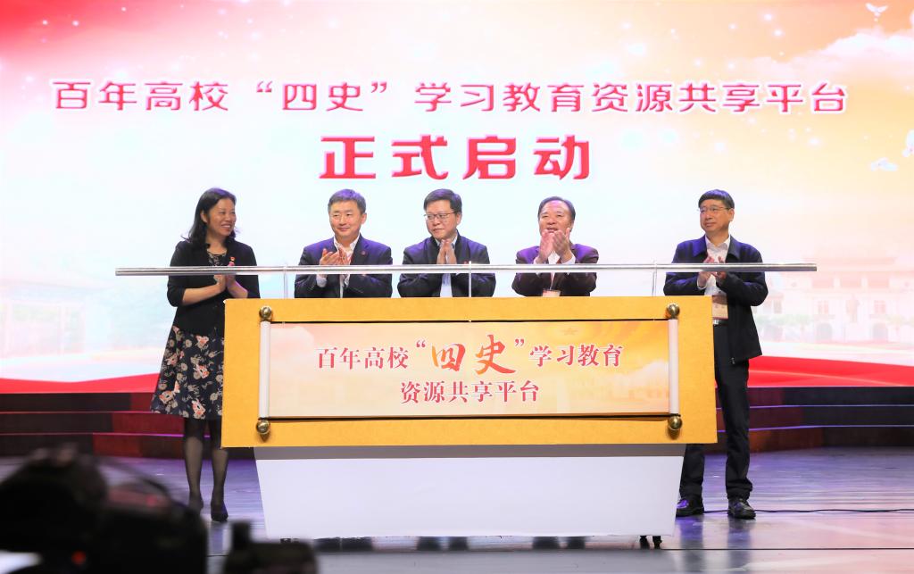 活动现场启动了百年高校“四史”学习教育资源共享平台。平台依托四所高校先期启动和共享,未来将逐步面向全国各高校提供丰富的、多样的、交互式的“四史”学习教育资源,进一步促进高校“四史”学习教育落地生根、深入人心、形成常态。