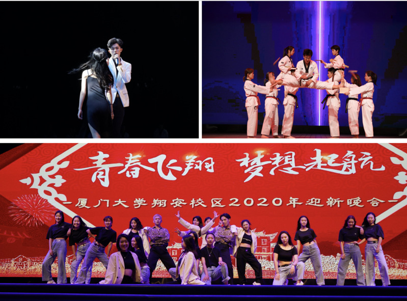 演出由18个节目组成,形式涵盖配乐朗诵、歌曲、舞蹈、戏剧、器乐演奏、跆拳道等。整场表演看点十足:歌伴舞《共圆中国梦》豪迈大气、振奋人心,体育舞蹈《我和我的祖国》点燃师生拳拳爱国心;由校区主持人队表演的原创诗朗诵《厦大是一树花》,为新生细数翔安校区生活的精彩点滴;《我和2021有个约》里一张张青春洋溢的面孔舞动校园,憨态可掬的“小百”“小厦”扭动身躯跟随着音乐欢快律动,共同抒发了对即将到来的百年校庆的真挚愿景……