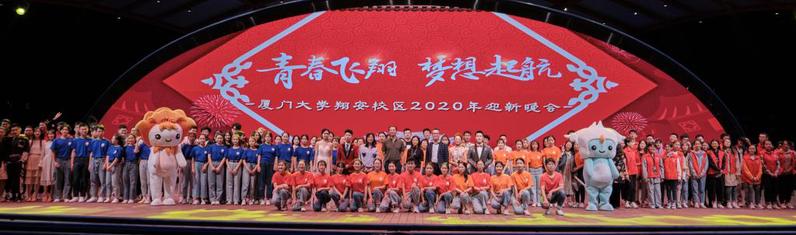 10月18日晚,翔安校区学生广场“小巨蛋”舞台化身音乐海洋,“青春飞翔,梦想启航” 2020年迎新晚会在此举行。校党委副书记赖虹凯、翔安校区管委会副主任黄宇霞与师生共同观看晚会。