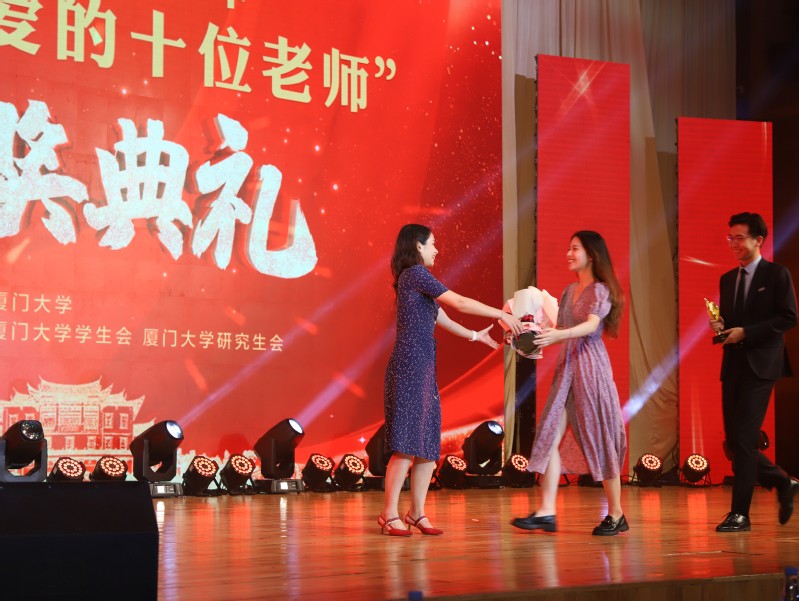 “我最喜爱的十位老师”评选活动是由厦门大学主办,校学生会、研究生会承办,艺术学院学生会、物理科学与技术学院学生会协办,校教育发展基金会支持,推荐、评选、颁奖等环节由广大同学共同组织和参与的一项全校性活动,迄今已成功举办八届,活动得到广大师生的一致好评和喜爱。活动旨在弘扬尊师重教的传统美德,加强师生之间的良性情感互动和学术互动,引导见贤思齐的教师队伍风貌,并为广大学子提供了表达对老师们辛勤付出的感恩之情的平台。校党委副书记赖虹凯、校关工委常务副主任黄如彬、校党委教师工作部副部长伍伟平、校人事处副处长王晓丽、校研究生院学位与学科建设办公室副主任吴伟泰、校教育发展基金会副秘书长赵晓慧、校工会副主席余炳建、校团委副书记周林琪以及各院领导、团干及师生代表也共同见证了这一难忘时刻。