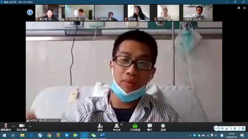 (余哲炜老师住院期间仍在学院线上党课分享交流教育扶贫经验)