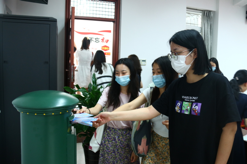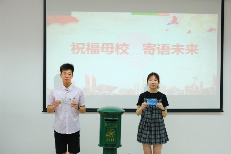 铭记母校关怀,寄语美好未来。刘可欣、罗舒文、阮雅莹、马权政、王颢嘉、李梦飞等6位毕业生带来了诗朗诵《最好的四年》,与大家一同回忆往昔,展望未来,鼓励同学们以良好精神风貌和饱满工作热情踏上人生新征程。活动现场还特别设置了信箱,在场师生纷纷在明信片上写下对母校的祝福和对未来的期许,并郑重地将明信片投入了信箱当中。