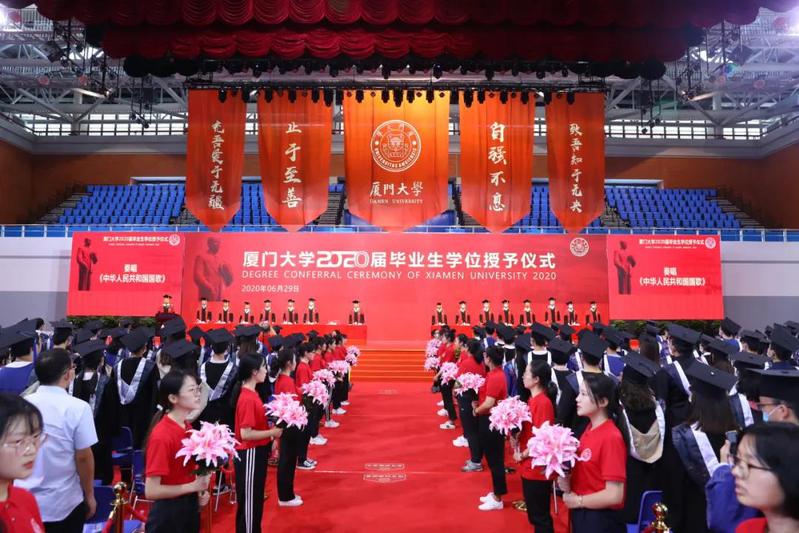 今年的毕业典礼严格落实疫情防控常态化相关要求,控制室内聚会人数。与往年不同的是,典礼在建南大会堂设主会场,在各学院研究院设分会场,并通过人民日报、人民网、央视新闻+、学习强国、央视频、视友网等平台进行线上同步直播。典礼中的学位授予仪式分别在建南大会堂正门外和翔安校区综合体育馆举行。