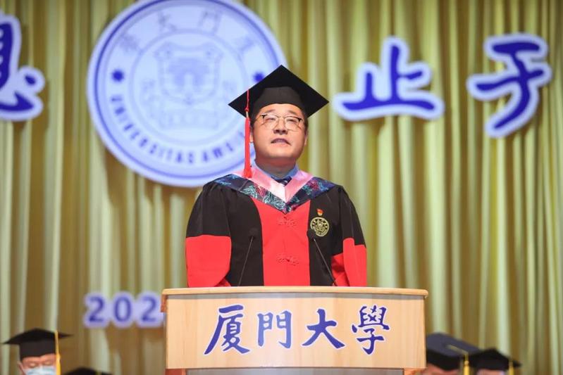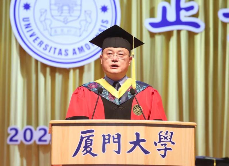 生命科学学院吴乔作为教师代表发言,用“感恩”“抱负”“创新”与毕业生共勉,希望大家把嘉庚精神带出校园,以自强不息的精神和止于至善的理念面对人生,秉持远大理想,坚持崇高抱负,把人生价值与国家和民族复兴联系起来,永葆奋进姿态,敢为人先,努力扩充眼界,拓宽格局,放大胸怀,优化气度,为创造人类美好未来贡献自己的创新力量。