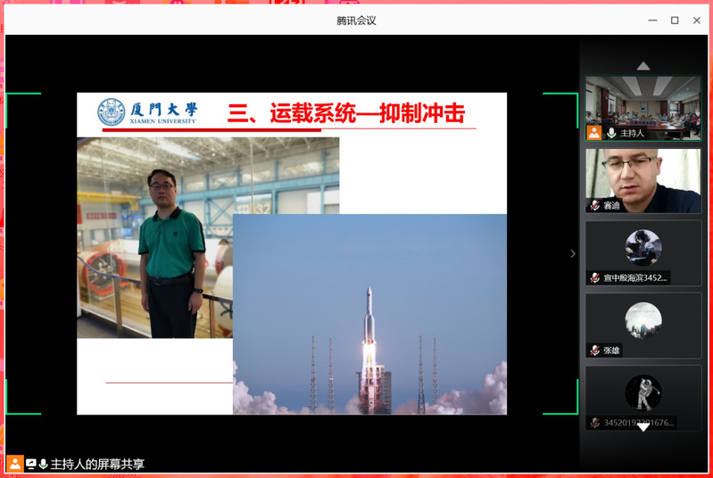 肖望强分享了参与长征五号B运载火箭科研攻关过程的心得体会,他用图表等形式深入浅出地讲解了研究过程中存在的难题以及工作方向。他提到:我们正处于特殊的历史时刻,肩负特殊使命,国家迫切需要我们成长起来担当重任,我们要将自身所学与国家的需求结合起来,为祖国贡献自己的一份力量,真正做到知行合一。谈到日常科研时,肖老师认真地说:“我到现在都坚持每天在一线做实验,不要以为学了仿真就不用真正动手做实验了。真正重大的突破都来自于实践,没有实践仿真就是空中楼阁。”