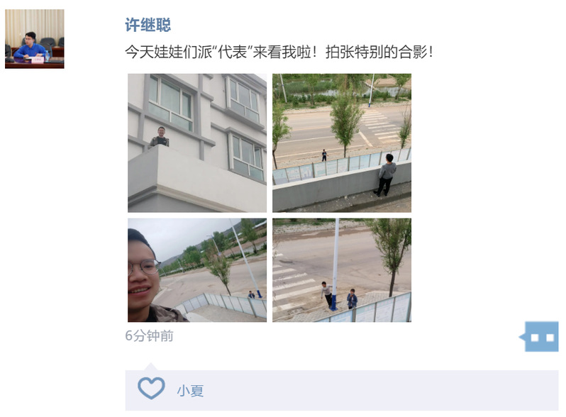 与孩子们的重逢,就剩下隔离这最后一道关卡啦!原以为隔离的日子,可能是有些枯燥、焦灼的,哪想到娃娃们得知我在沙塘隔离的消息,班群里瞬间热闹了起来。“老师,我想你了”“老师,你还要隔离多久呀”······最后还派了家住在“附近”的同学作为“代表”过来,虽然只能“隔墙相望”,但好在距离终于缩短到几米了!