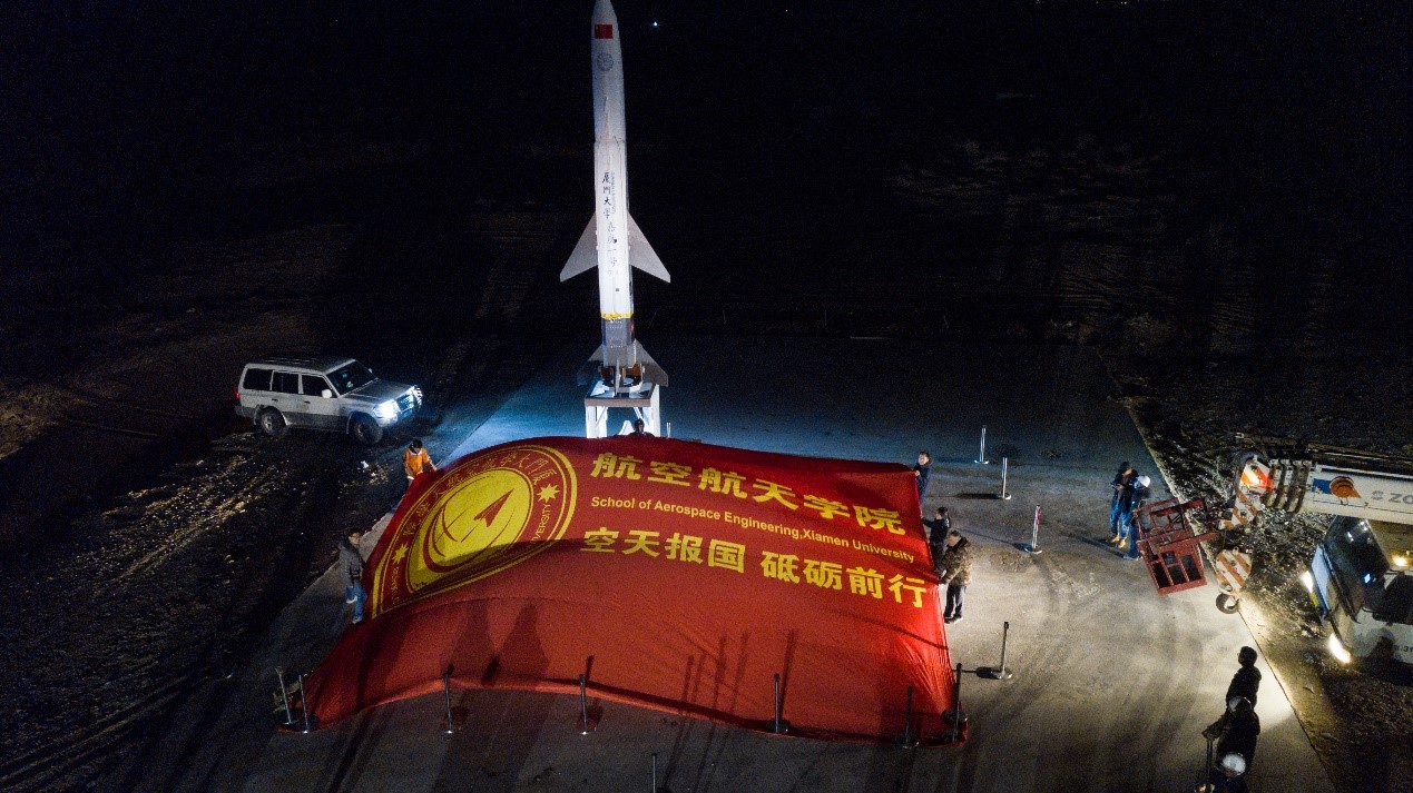 2019年4月23日上午7点28分,中国西北部沙漠无人区飞行试验发射阵地的一声巨响划破天空——厦门大学航空航天学院与北京凌空天行科技有限责任公司共同研制的“嘉庚一号”火箭点火升空,总长8.7m的火箭瞬间飞至26.2km的高空,在天空中留下了一道长长的轨迹后,滑翔到指定的落点区域。从2015年航空航天学院的成立,到“嘉庚一号”、“南强一号”、“翔安一号”等科研成果的相继问世,尤延铖及其团队付出了难以想象的努力。