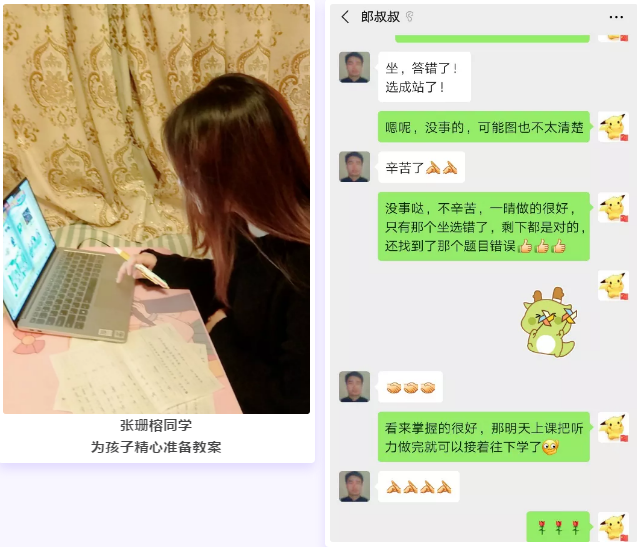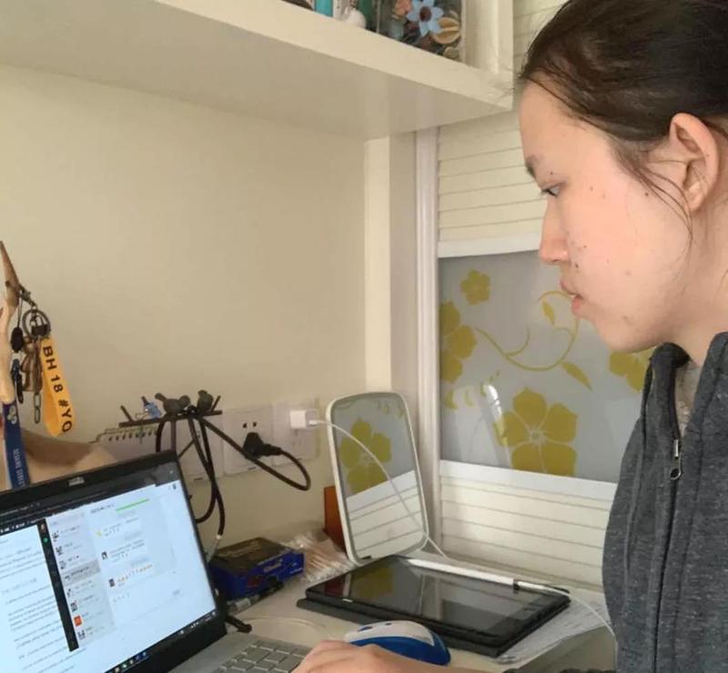 一开始和一晴的爸爸,郎桂斌先生沟通辅导时间和辅导方式时,是极其“不好意思”的,因为郎爸爸实在是太“客气”了,不仅时时应对我们这些志愿者的一些小问题,更是在时间安排上完全地从我们角度考虑。最后敲定每个老师一周三次课,每次课一个小时,用钉钉直播上课。
