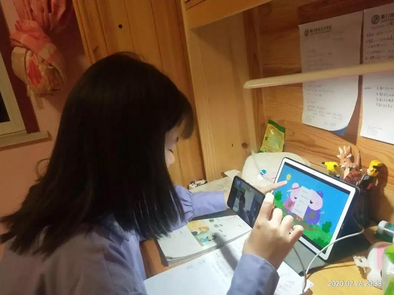 2月28日,艺术学院2016级本科生黄子瑜在电脑前开始了她的线上授课,讲课的内容是看图写话,屏幕的另一侧坐着厦门市某小学二年级学生君君和辰辰(化名),一对可爱的双胞胎姐妹。黄子瑜寓教于乐,将元宵佳节的节日习俗猜灯谜融入对孩子们的看图写话辅导之中,姐妹俩听得聚精会神,不知不觉到了本次直播授课的尾声。下课前黄子瑜给孩子们布置了“制作花灯”的手工作业,双胞胎姐妹俩意犹未尽,开始期待下一次黄老师的直播授课。