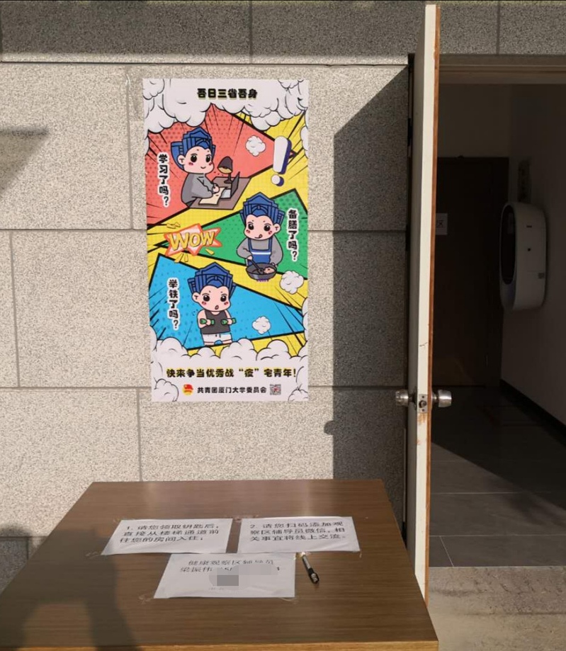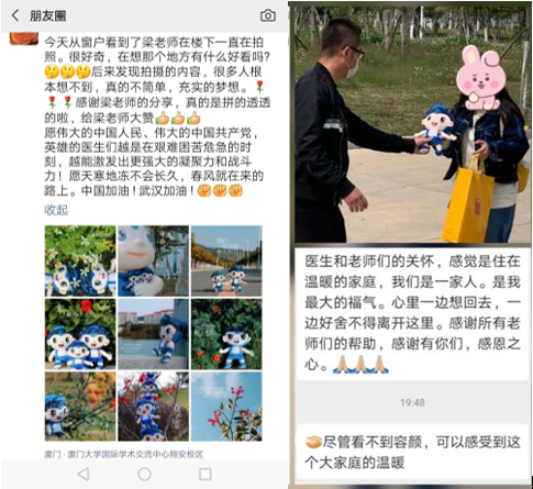 观察区临时党支部和临时团支部的细微举动与点滴关怀,入住的师生们都看在了眼里。附属翔安医院王老师就在微信群里表达:“工作人员的默默付出让我们感动,疫情总会过去,但这份情、这份爱将永远保存在心里。”