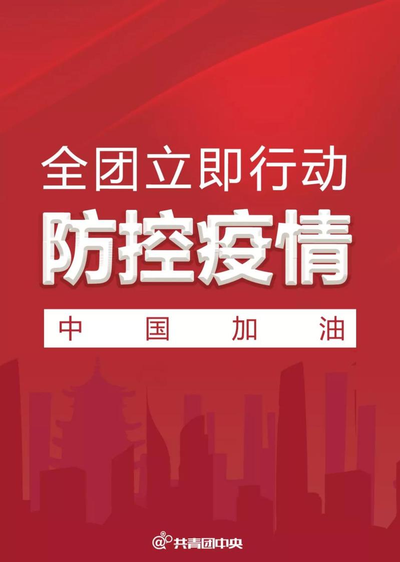 当前,新型冠状病毒感染肺炎疫情的防控工作正处于关键时期。党中央、国务院作出重要部署,全国上下众志成城。各级共青团组织和广大团干部、团员青年要立即行动起来,深入贯彻落实习近平总书记重要指示和党中央、国务院决策部署,有序参与防控工作,为坚决遏制疫情扩散、夺取防控斗争胜利贡献力量。
