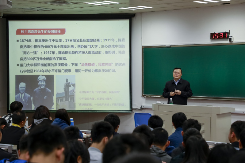 在题为《厦门大学四种精神的时代价值与现实意义》的思政课上,张荣从大学文化和大学精神谈起,生动讲述了厦门大学“四种精神”代表人物的先进事迹。