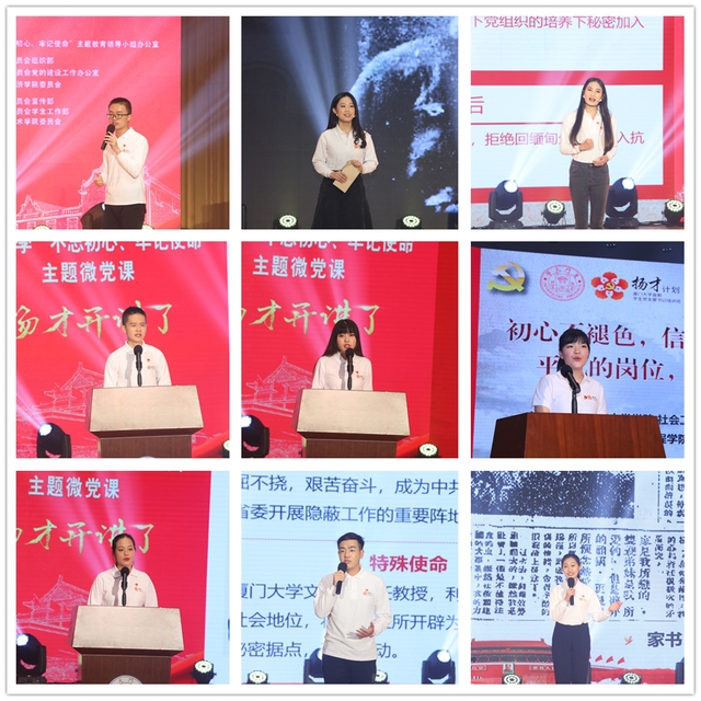 在配乐诗朗诵《致罗扬才烈士》的铿锵话语中,报告会拉开序幕。学员代表们将中共厦大首任支部书记罗扬才、晋冀鲁豫边区金融事业的奠基人高捷成、厦门妇女抗战领导人陈康容、投身革命抨击时弊的应家骥、厦大工友夜校教员修省、厦大教务处工友陈炎千、中共隐蔽战线上的重要人物肖炳实、中共闽南特委副书记董云阁、爱国华侨白雪娇等9位厦大革命先辈感人肺腑的生平事迹一一呈现,同时,情真意切地分享了自己在各个领域践行革命精神的经历与感悟。与会师生认真聆听并纷纷表示,跨越时空的红色对话让他们深受触动,大家要坚持以习近平新时代中国特色社会主义思想为指引,铭记革命历史,继承先烈遗志,与时俱进、继往开来,将涓涓细流汇入实现中华民族伟大复兴的磅礴力量中。