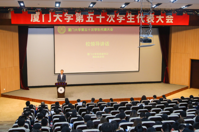 12月15日,我校第五十次学生代表大会在翔安校区德旺图书馆一号报告厅召开。校党委副书记赖虹凯,福建省学联主席李雨潼,共青团福建省委学校部副部长陈世景,组织部、宣传部、统战部、学生工作部、翔安校区党工委、保卫部、研究生院、校团委负责人及各学院党委、团委负责人出席大会开幕式,清华大学、中国人民大学等兄弟高校学生会也对大会的召开发来贺信。