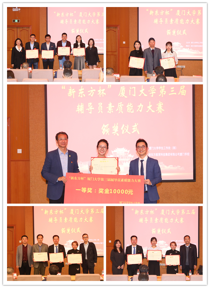 赛后,厦门大学学生工作部(处)与厦门市思明区新东方教育培训学校签订了校企人才战略合作协议书,双方将共同开展辅导员素质能力提升项目。