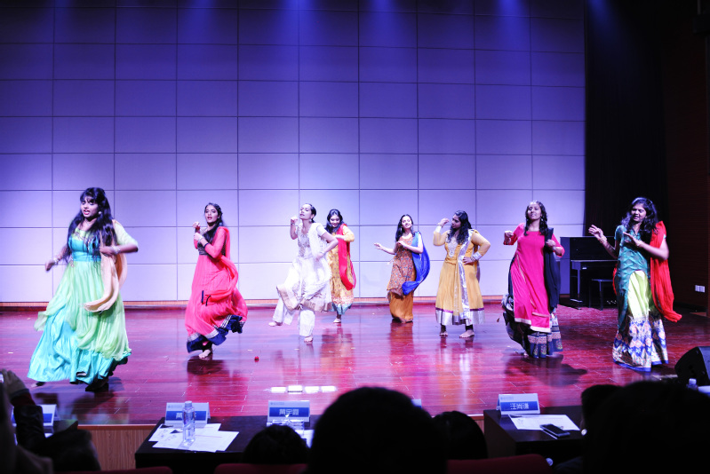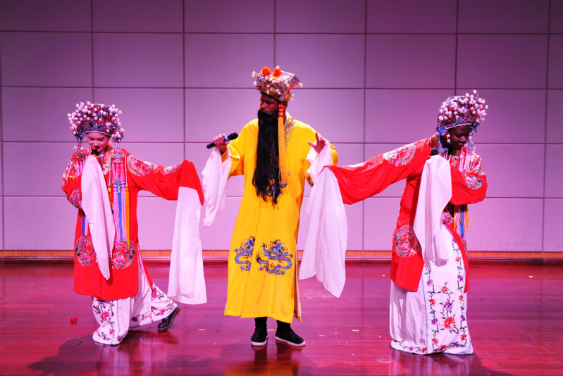 来自校区不同学院、不同国家的同学带来了自己精心编排的歌舞、话剧、戏曲和唱歌节目,他们或踏歌而舞,或庄严起势,伴着梦幻的灯光和动人的音乐,共同编织出舞台上十二个精彩绝伦的节目。《棍舞龙飞》在绚烂烟花中绽放双节棍武术之美,中外同学演绎的杨氏和陈氏太极拳动中有静,刚柔相济。十一个国家的外国同学合唱《倔强》、八个国家的中外同学齐唱《鼓浪屿之波》,小黑小白身着戏服唱京戏越剧,中国同学唱现代歌曲,不同国家的语言文化荟萃于美妙乐符,唱出了中外同学的美好情谊。“非洲阿黛尔”Sheba的《In love》,舒缓婉转、触人心弦,英国同学王劭侯的B Box和歌剧唱段独特别致、惊艳四座。印尼传统舞蹈萨曼舞、印度风情热舞充满异国风情,中外女生汉服秀、中外同学太极拳、中外同学原创话剧《图兰朵》,无不呈现中西合璧,各国文化璀璨盛放的夺目光彩,也赢得全场老师和同学掌声和喝彩。