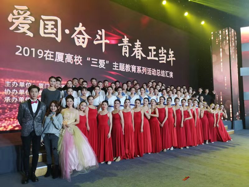 12月11日晚,“爱国·奋斗 青春正当年”——2019年在厦高校“三爱”主题教育系列活动总结汇演在厦门广电集团1000平米演播厅举行。校党委副书记赖虹凯、校团委书记曾铮等出席了本次汇演。