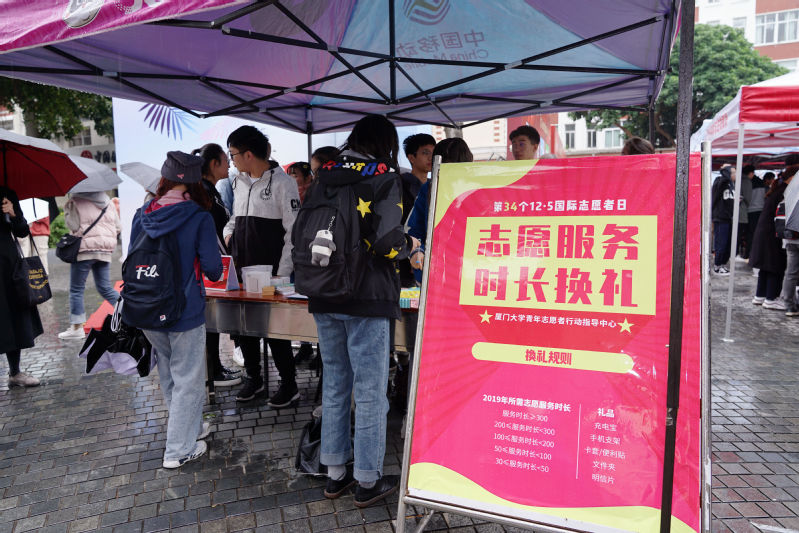 12月1日至5日,我校“12•5国际志愿者日主题活动周”成功举办。主题活动周由校团委、校妇委会主办,校青年志愿者行动指导中心承办,以“传志愿薪火,迎百年校庆”为主题,在思明校区三家村学生广场和翔安校区分别举办,向全校同学展示2019 年各学院优秀志愿服务项目以及校青年志愿行动指导中心风采,并对全校志愿服务工作进行推广,引导广大青年争做一名光荣的志愿者,在志愿服务中诠释青年担当。