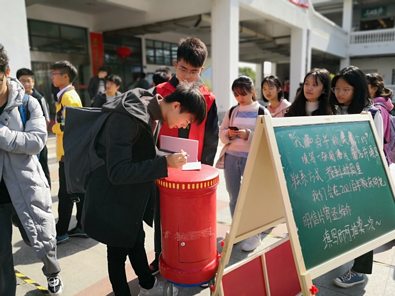 在翔安校区,来自各学院的青年志愿者们在一期竞丰餐厅前开展“志愿第一课”,来自各学院青年志愿者协会的骨干们带来自己的“看家本领”,面向新生志愿者进行志愿服务相关知识的现场教学。“相约百年校庆”的活动区前则是将同学们对志愿服务的期望以及对厦大百年华诞的祝福,以时光明信片的方式寄给2021年的自己,并在“汇爱聚力墙”上签名点赞,助力志愿服务活动。活动期间,艺术团的同学还为大家带来了三段快闪节目。多支志愿服务团队结合各类小游戏,向翔安校区学生展示了志愿服务项目的内容和成效。