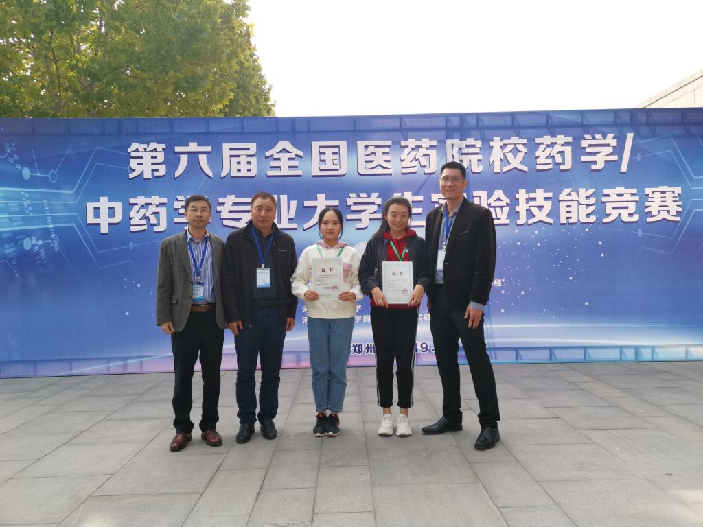 10月31日至11月2日,第六届全国医药院校药学/中药学专业大学生实验技能竞赛在河南中医药大学举办,我校药学院2016级本科生王天玉、陈舒甜分获一等奖、二等奖。