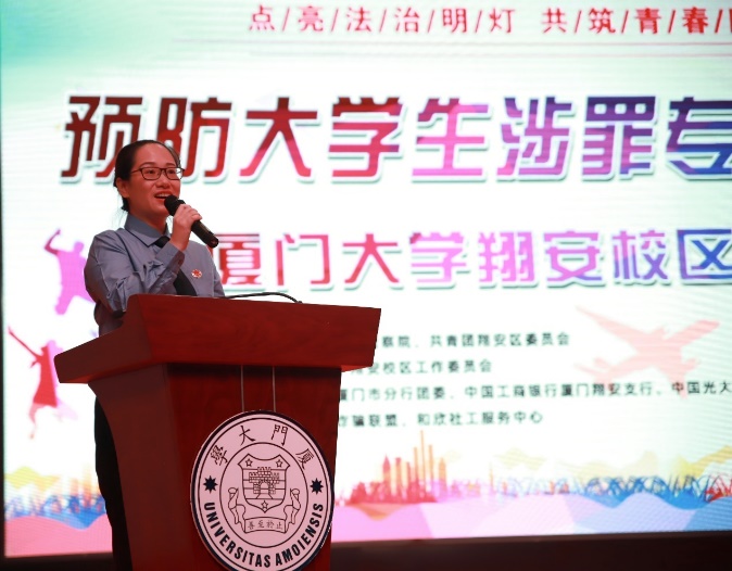 10月31日,预防大学生涉罪专题活动在厦门大学翔安校区举办,本次活动由厦门市翔安区人民检察院、共青团翔安区委员会主办,共青团厦门大学翔安校区工作委员会承办,以“点亮法治明灯 共筑青春防线”为主题,旨在提高辖区在校大学生自觉守法意识和自我保护意识,从源头上预防和减少青少年学生违法犯罪案件发生,促进校园安全和在校学生人身安全。