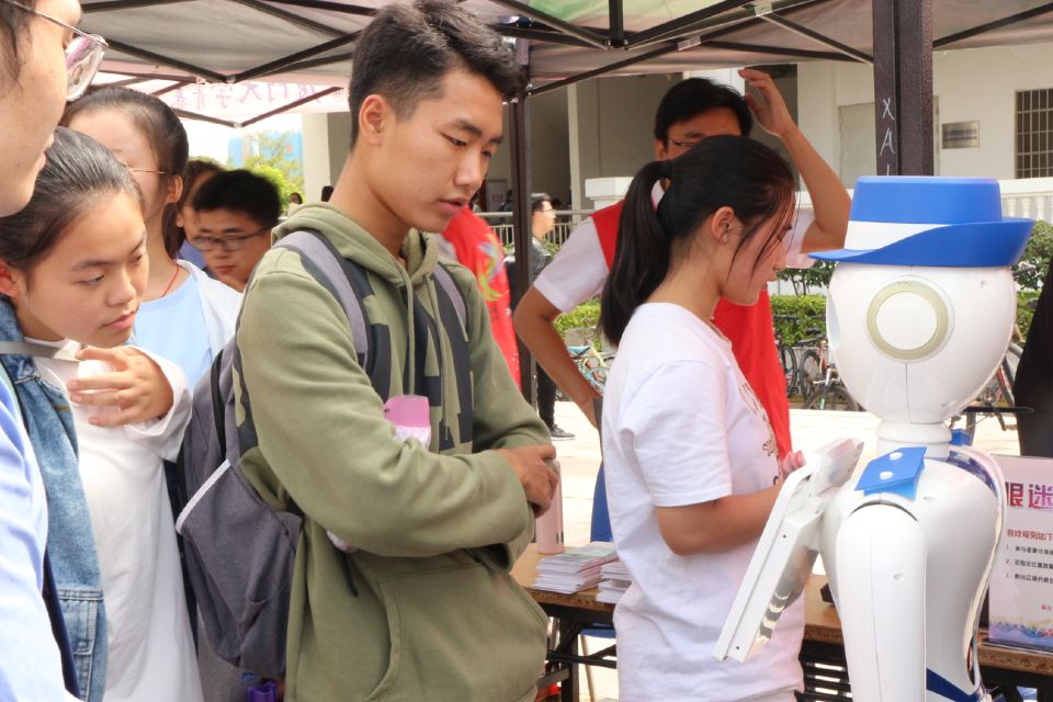 中午,活动的外场部分在一期竞丰餐厅前广场开启。现场活动丰富有趣,并不是传统的刻板知识讲说,而是通过小游戏拉近法律与学生之间的距离。活动包含“为法律代言”、“你比我猜”、“闭眼数钞票”、垃圾分类知识考查等,吸引了众多同学参与。在参与过程中,学生既能够感受到活动带来的乐趣,也能在活动中听讲解人员对相关活动背后的知识进行介绍。完成每一个活动学生都能领到相应的礼物和法律知识宣传册,这激发了同学参与积极性,也提高了活动传播范围。现场还请来了法律机器人,学生可以向机器人询问相关法律知识,机器人根据问题作出解答,现场一度十分火爆。