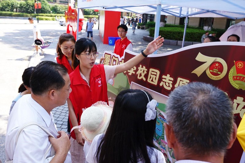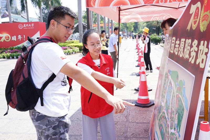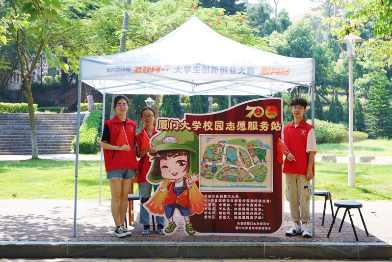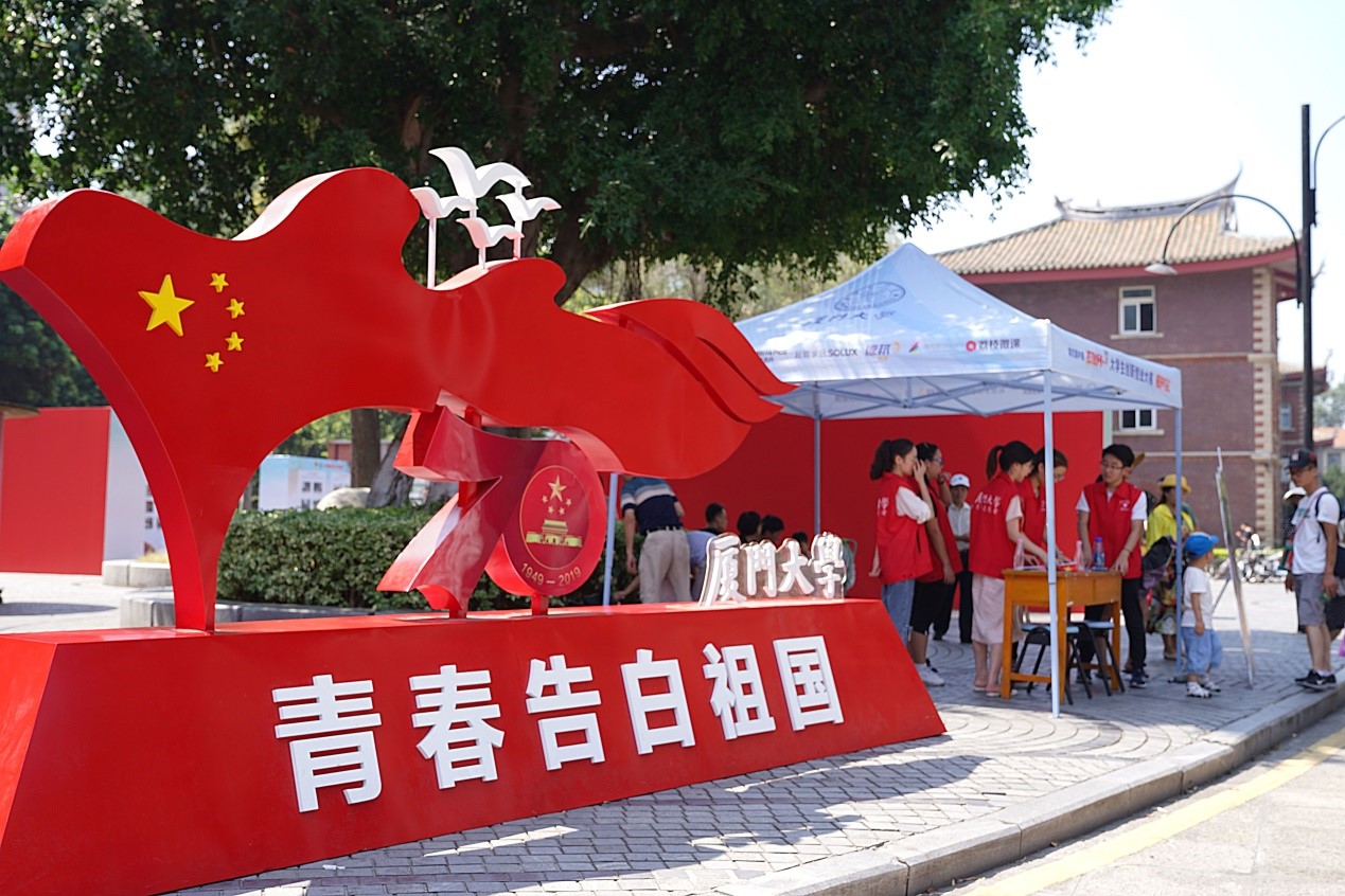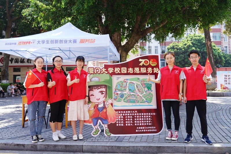 今年国庆期间,校青年志愿者行动指导中心在思明校区设立了5个服务点:群贤校门,大南校门,科艺中心前,三家村广场,芙蓉隧道口,共招募志愿者133名。更为特别的是,今年增加了垃圾分类投放引导、劝导隧道乱涂乱画的职能。与此同时,还增添了庆祝中华人民共和国成立70周年的元素。