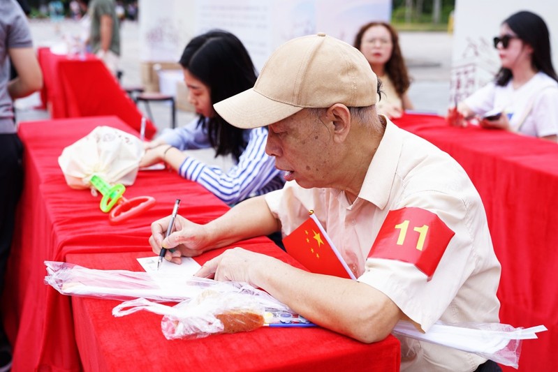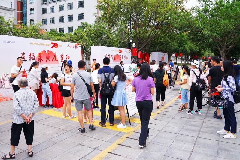 10月7日为欢度重阳节,由校团委、学生处、离退休处、体育教学部举办“我们的节日·重阳”系列活动在科艺中心广场火热上演。“寻找拼字材料,共汇国庆祝福”、“佳节文化知多少”、“齐心前行”、“茱萸香囊手中传”、“掌上风筝飞”等互动游戏环节让国庆假期最后一天的厦大校园热闹非凡。志愿者们依旧坚守在岗位上,仔细地分发明信片、风筝、绘制工具给每一个前来参加活动的老少朋友,认真地引导每一个游客完成游戏任务。他们脸上都贴着国旗,他们是这个重阳节“最可爱的人”之一。
