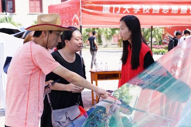 校园志愿服务站设立于2012年,由厦门大学团委主办,厦门大学青年志愿者行动指导中心承办。针对游客在校内参观游览出现的一系列问题,厦门大学校园志愿服务站应运而生。它是在厦门大学思明校区于节假日定期开展的一项提供校园线路、文化咨询和文明劝导的校园志愿活动。志愿者为游客介绍景点、规划合理的游览路线,引导游客文明、有序地参观校园。